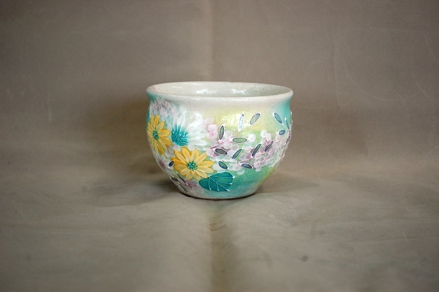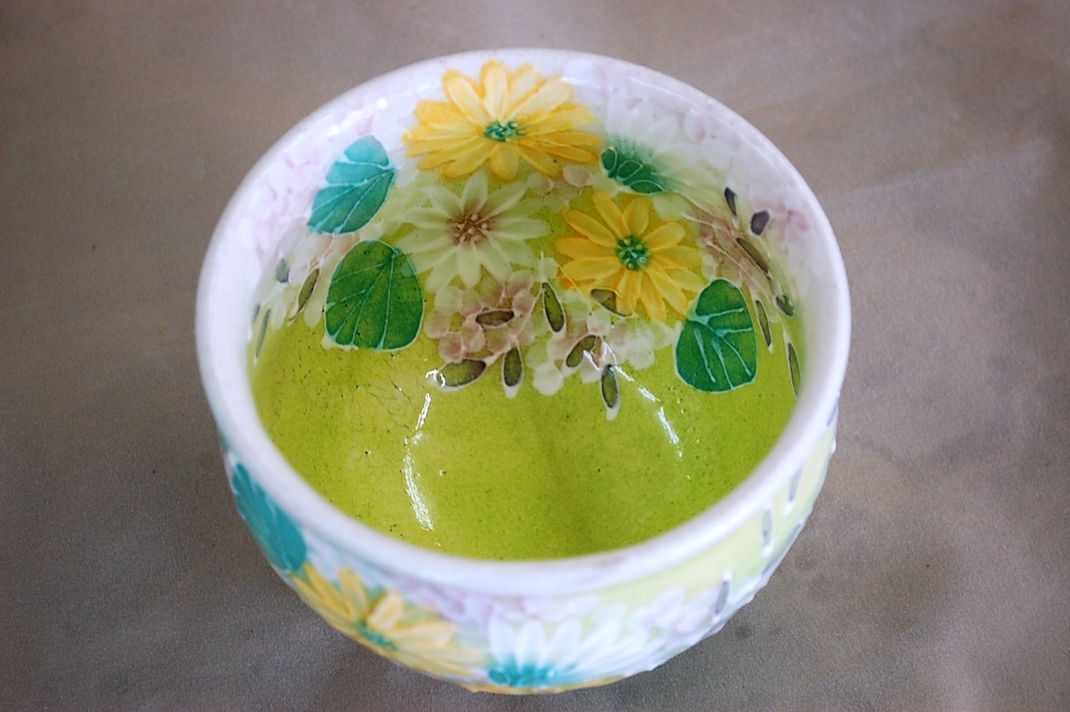 ■美しい緑彩で楽しむ、緑彩花畑福々碗平型